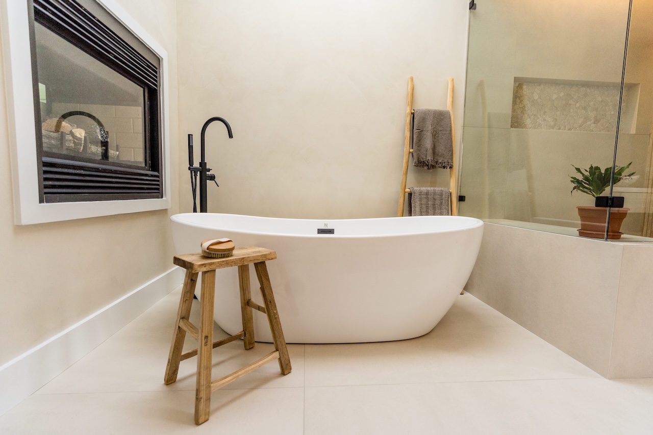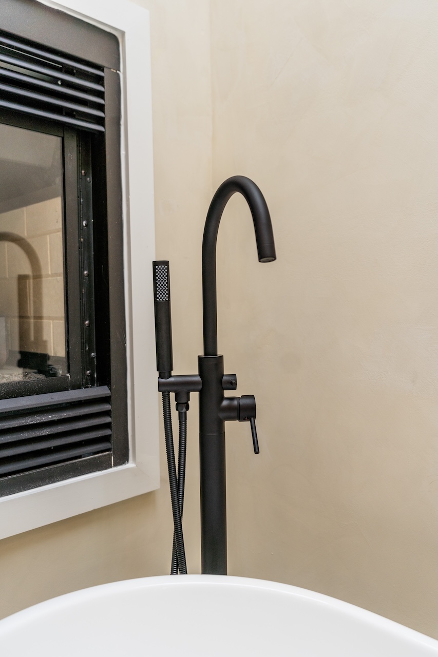 - Freestanding, insulated soaking tub for heat retention and comfort